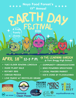 Noyo Food Forest invites the community to the 17th Annual Earth Day Festival, Saturday, April 18, from 12–5 PM at The Learning Garden on the Fort Bragg High School campus.